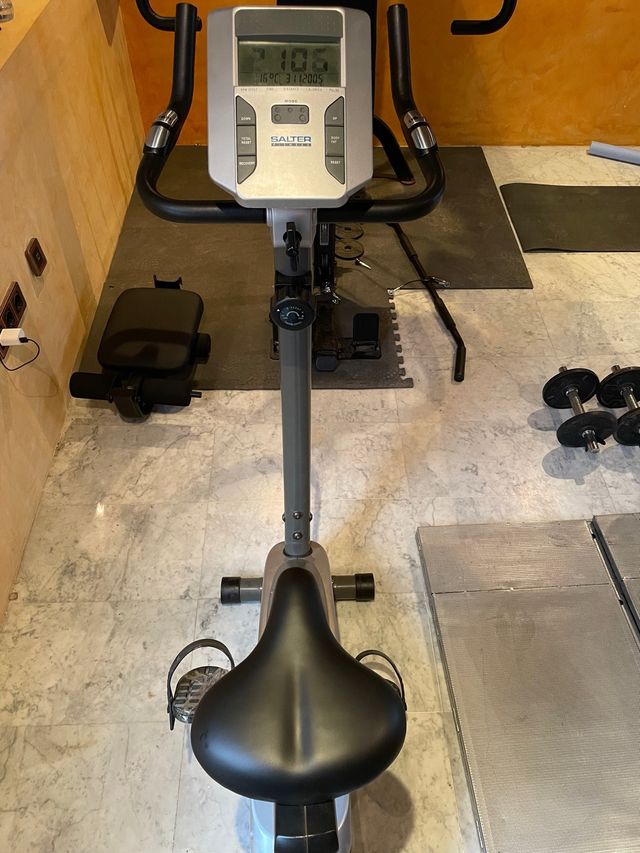 Detalles del productoBicicleta estática de la marca Salter, ideal para entrenamientos en casa. Su diseño permite un pedaleo cómodo y estable.