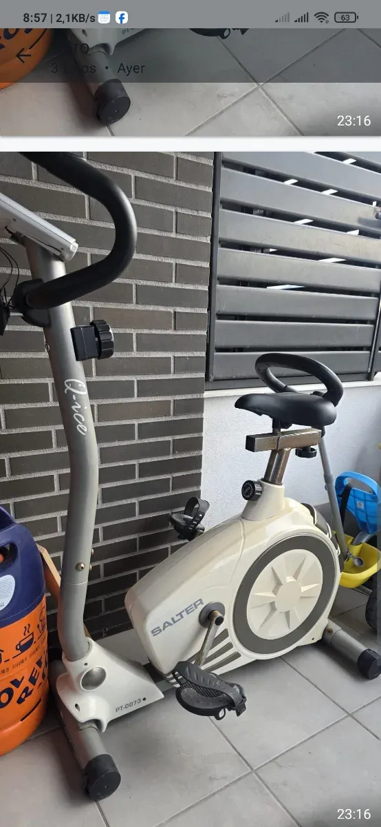 Bicicleta estática de la marca Salter, modelo PT-0073. - Diseño en color blanco y gris. - Manillar ergonómico. - Sillín ajustable en altura. - Pedales con sujeción.