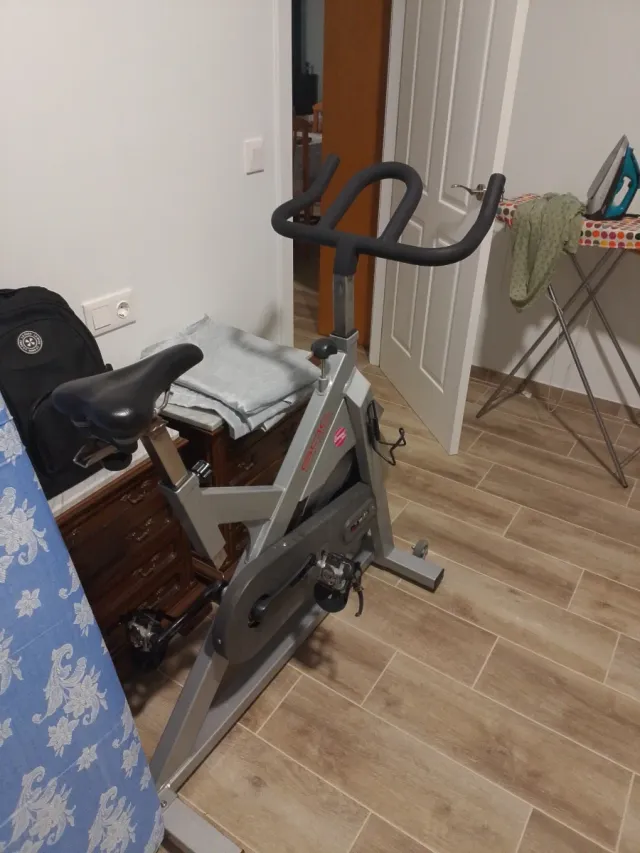 Detalles del productoBicicleta estática de spinning, ideal para entrenamientos en casa.