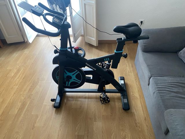 Detalles del productoBicicleta estática de la marca Topoture en color negro. Ideal para entrenamientos en casa.