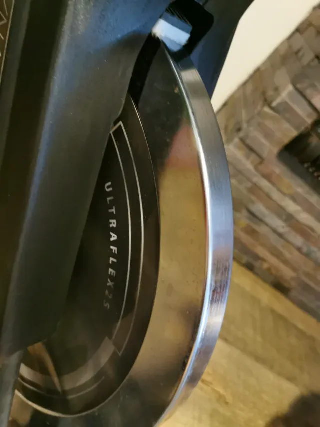 Bicicleta estática con diseño moderno y acabado metálico. - Modelo ULTRAFLEX25. - Disco de inercia cromado.