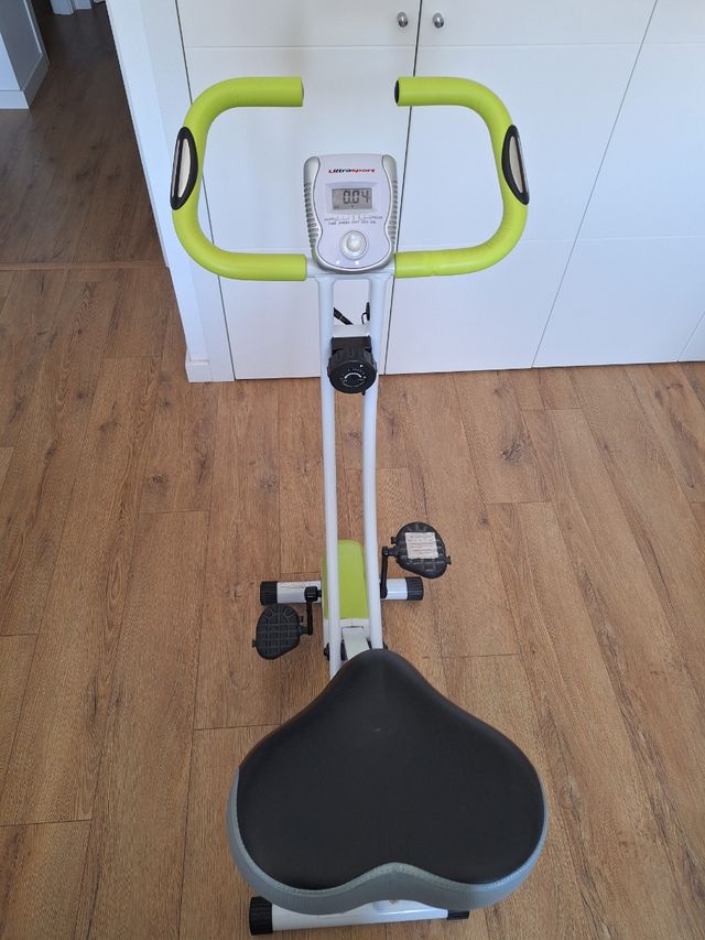 Detalles del productoBicicleta estática de la marca Ultrasport, ideal para hacer ejercicio en casa. Su diseño es compacto y fácil de mover.
