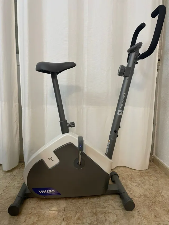 Detalles del productoBicicleta estática Domyos VM130 en color gris y blanco. Ideal para entrenamientos en casa.