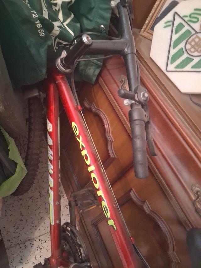 Bicicleta de montaña Explorer en color rojo. - Cuadro de aluminio. - Ruedas de 26 pulgadas. - Frenos de disco. - Cambio Shimano de 21 velocidades.