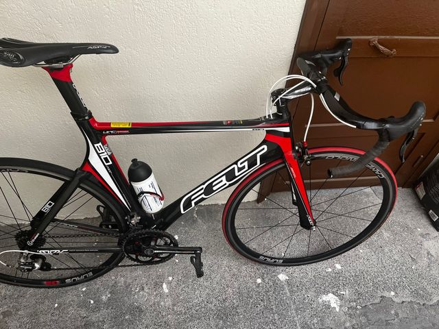 Detalles del productoBicicleta de carretera Felt con cuadro de fibra de carbono.