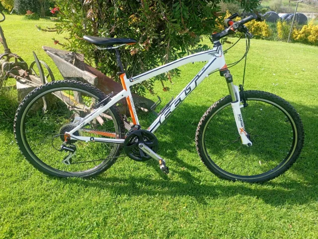 Detalles del productoBicicleta de montaña Felt Q 200 en color blanco y naranja.