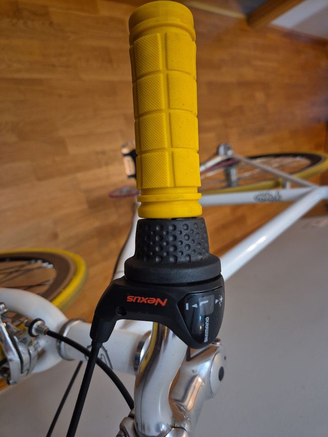Detalles del productoBicicleta fixie en estupendas condiciones, apenas usada. Es de color blanco con detalles amarillos.