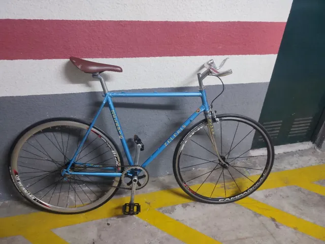 Bicicleta estilo fixie con freno contrapedal. Rueda delantera CAMPAGNOLO ZENDA y trasera WEINMANN DP 18
