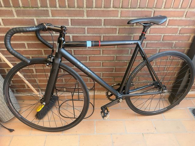 Detalles del productoBicicleta de piñón fijo de alta calidad, cuadro ligero tipo pista, con freno delantero instalado y cauchos nuevos.