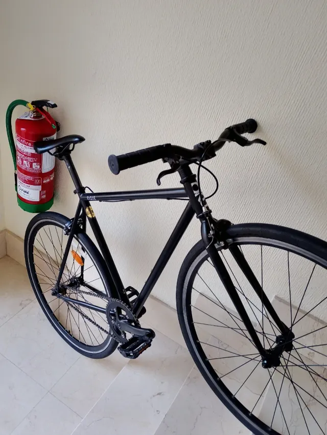 Bicicleta tipo fixie en color negro. Ideal para desplazamientos urbanos. - Cuadro de metal. - Ruedas de 700c. - Frenos delanteros. - talla S - estado perfecto