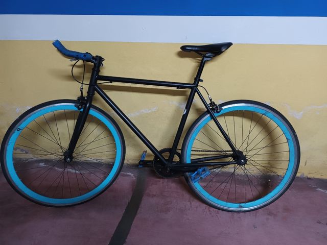 Bicicleta Fixie Negra con Ruedas Azules