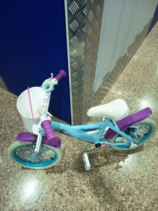 Detalles del productoBicicleta infantil de 14 pulgadas con temática de Frozen. Ideal para los más pequeños.