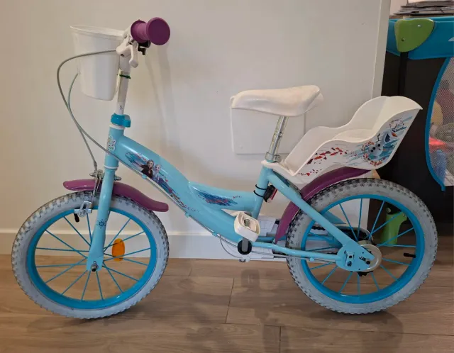 Detalles del productoBicicleta infantil con temática de Frozen, tamaño de rueda de 16 pulgadas. Ideal para los más pequeños.