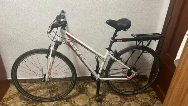 Bicicleta de montaña Ghost con ruedas de 29 pulgadas. - Cuadro de color blanco. - Incluye portabultos trasero.