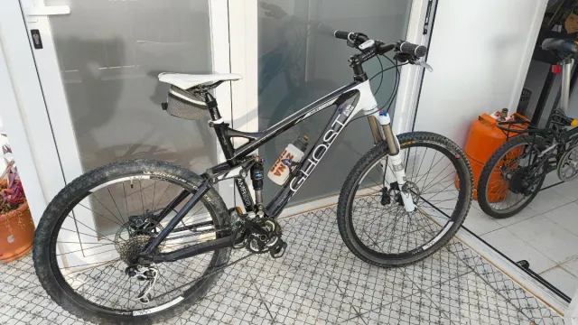 Detalles del productoBicicleta Ghost con doble suspensión, ideal para BTT y descensos