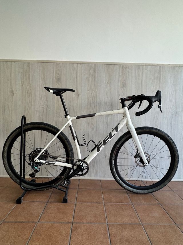 Detalles del productoBicicleta de gravel Felt en color blanco con detalles gráficos.