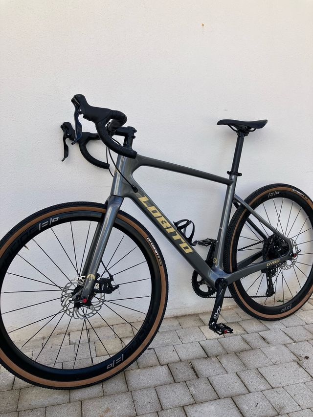 Bicicleta de gravel de la marca Lobito GV08, talla M , con: - Cuadro de carbono. - Frenos de disco. - mono plato y 12 velocidades.