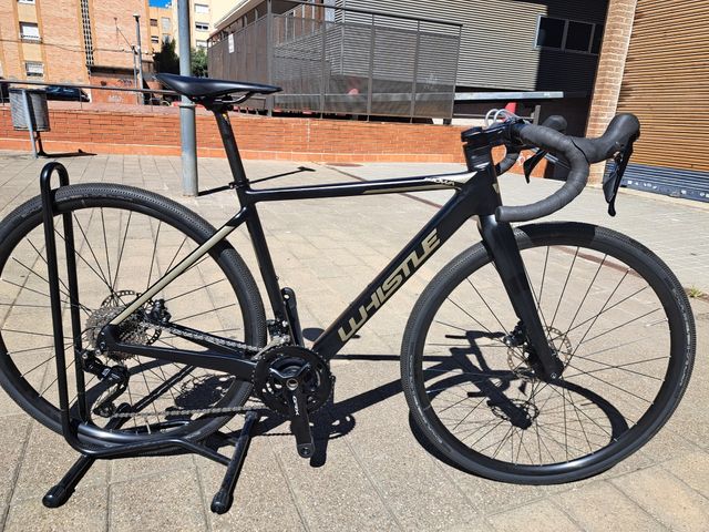 Detalles del productoBicicleta de gravel Whistle en color negro. Ideal para explorar caminos y senderos.