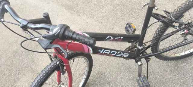 Bicicleta Hador en buen estado, lista para usar. - Cuadro de bicicleta de montaña. - Color principal negro con detalles en rojo y rosa. - Ruedas de 26 pulgadas.