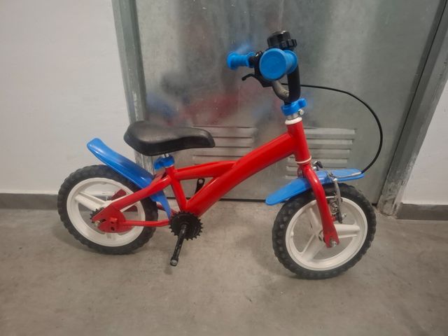 Detalles del productoBicicleta de equilibrio de color rojo y azul, ideal para niños de 4 años. Tengo los pedales y la cadena guardados.