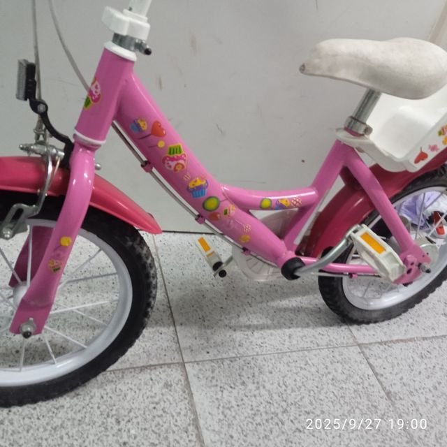 Bicicleta infantil de color rosa, ideal para los más pequeños. - Rueda de 14 pulgadas. - Diseño con divertidos dibujos.