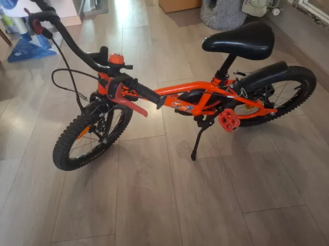 Bicicleta infantil de 16 pulgadas en color naranja. Ideal para los más pequeños. - Ruedas de 16 pulgadas. - Frenos de mano. - Sillín ajustable. - Incluye ruedines.