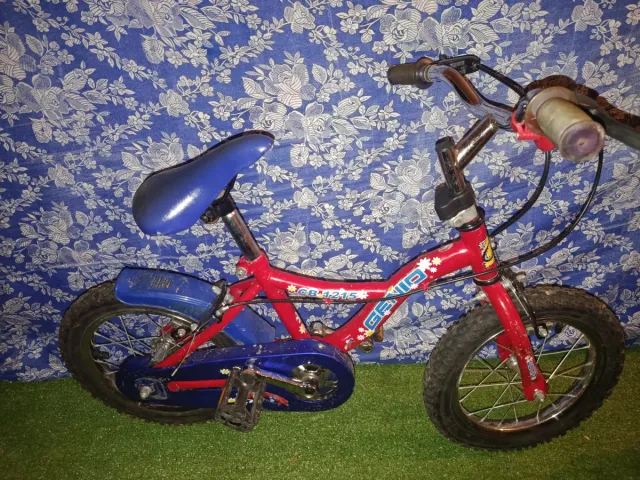 Bicicleta infantil de color rojo y azul, ideal para niños de 3 a 6 años. - Ruedas de 12 pulgadas. - Sillín ajustable. - Guardabarros delantero y trasero.