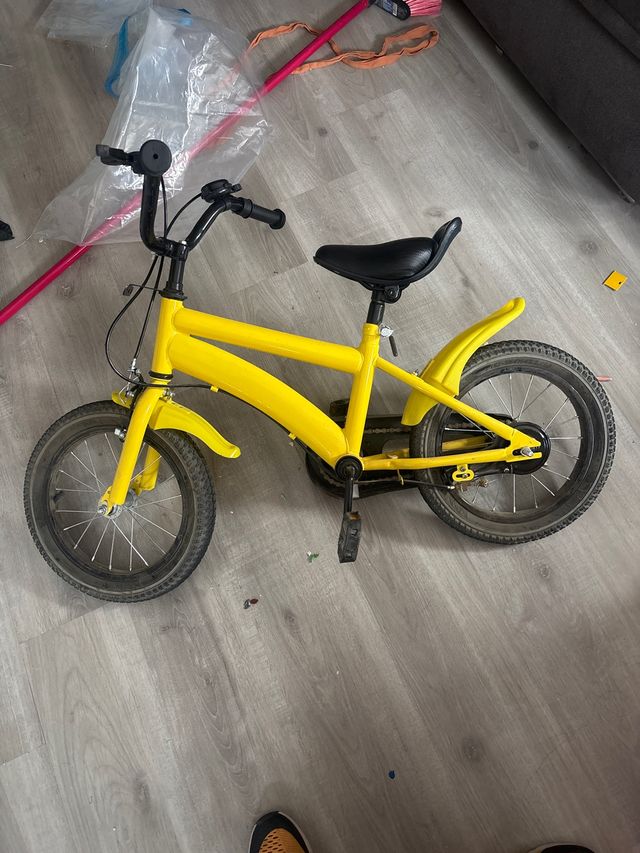 Detalles del productoBicicleta infantil de color amarillo, ideal para los más pequeños.