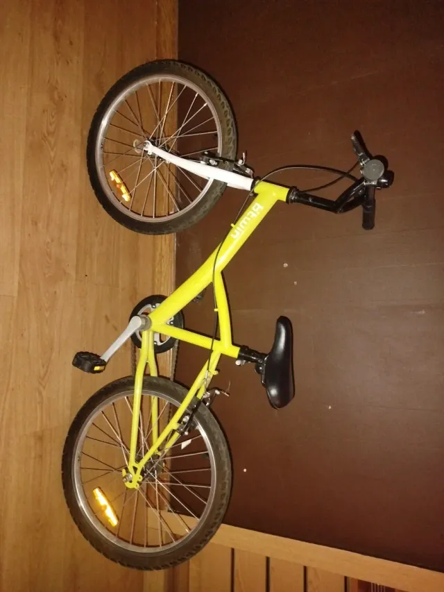 Bicicleta de color amarillo, ideal para niños. - Ruedas de 20 pulgadas. - Frenos. - Sillín ajustable.