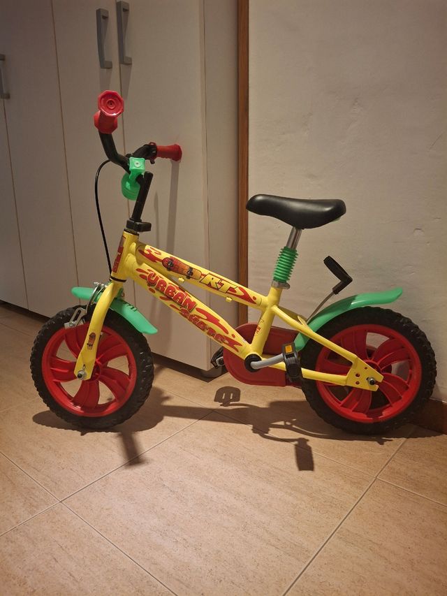 Detalles del productoBicicleta infantil de color amarillo con detalles en rojo y verde. Ideal para los más pequeños. Prácticamente nueva porque no la usó.