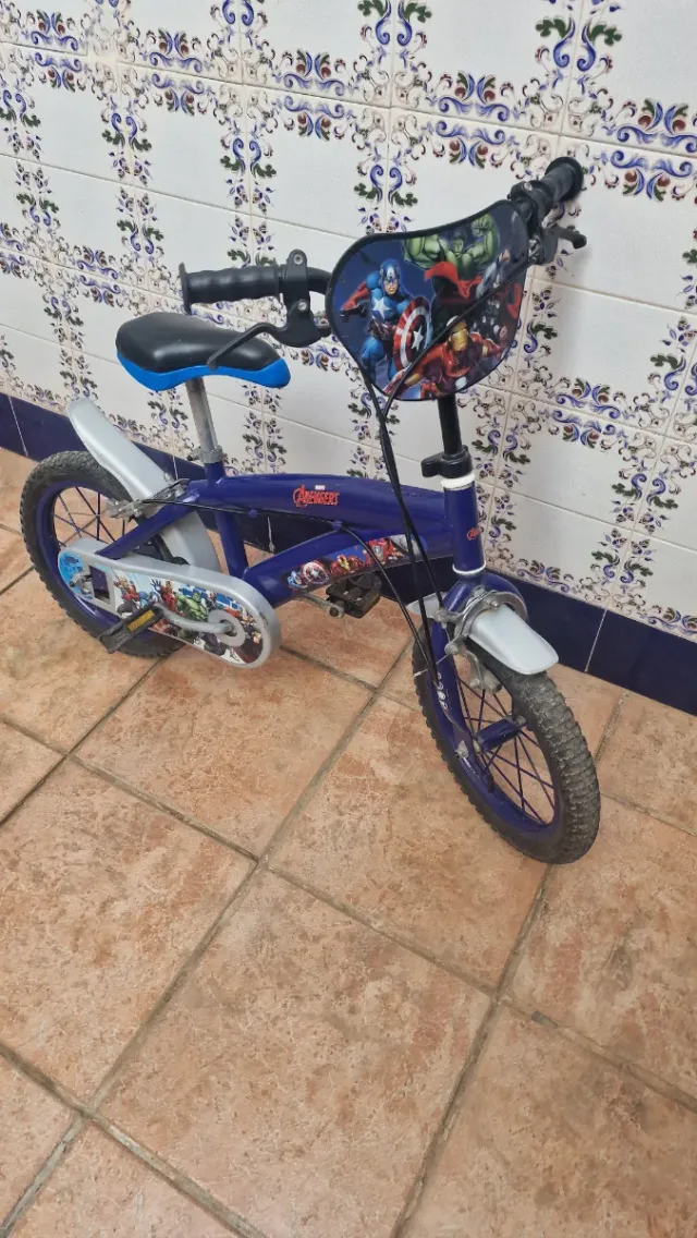 Bicicleta infantil con diseño de los Vengadores. - Color azul. - Protector de cadena con diseño. - Manillar con escudo de los Vengadores.