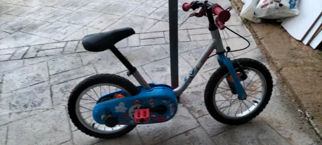 Se vende bicicleta pequeña de color azul. - Ruedas de 12 pulgadas. - Pedales rosas. - Diseño con dibujos animados.