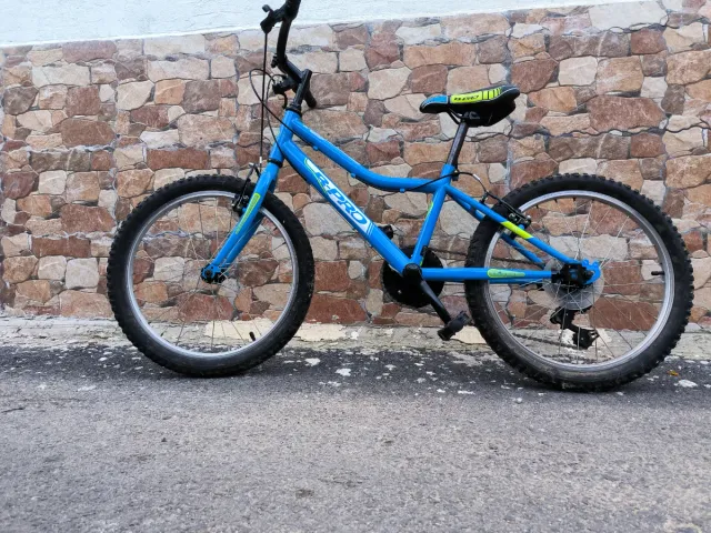 Bicicleta infantil de 20 pulgadas en color azul. - Ruedas de 20 pulgadas. - Color azul con detalles verdes y amarillos. - Sillín ajustable.