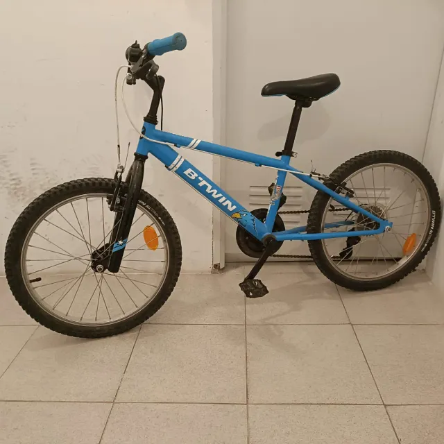 Bicicleta infantil de la marca B'TWIN en color azul. - Ruedas de 20 pulgadas. - Sillín ajustable en altura. - Reflectantes en ruedas y pedales.