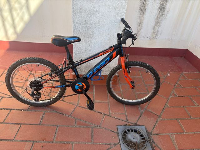 Bicicleta infantil BH J20 en color negro y naranja. - Ruedas de 20 pulgadas. - Frenos. - Sillín ajustable.