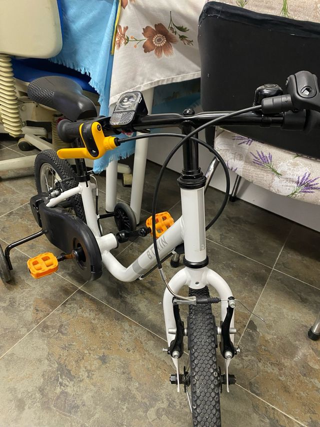 Bicicleta infantil blanca con ruedines