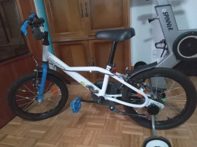 Bicicleta infantil lista para usar. - Color blanco con detalles en azul. - Ruedines incluidos. Como nueva poco uso 16"