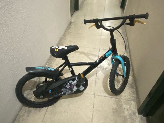 Bicicleta infantil de la marca BTWIN, ideal para los más pequeños. - Diseño en color negro y azul. - Ruedas de 12 pulgadas. - Sillín ajustable.