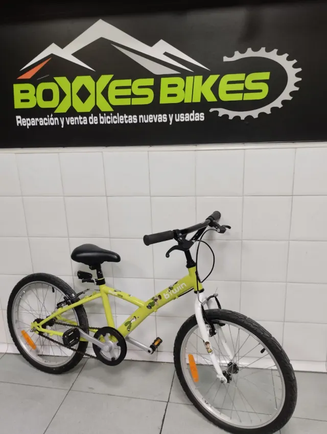 Bicicleta infantil de color amarillo con detalles. - Marca Btwin. - Ruedas de 20 pulgadas. - Ideal para niños.