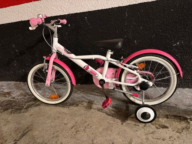 Detalles del productoBicicleta infantil Btwin de 16 pulgadas, ideal para los más pequeños. Su diseño en color blanco y rosa la hace muy atractiva.