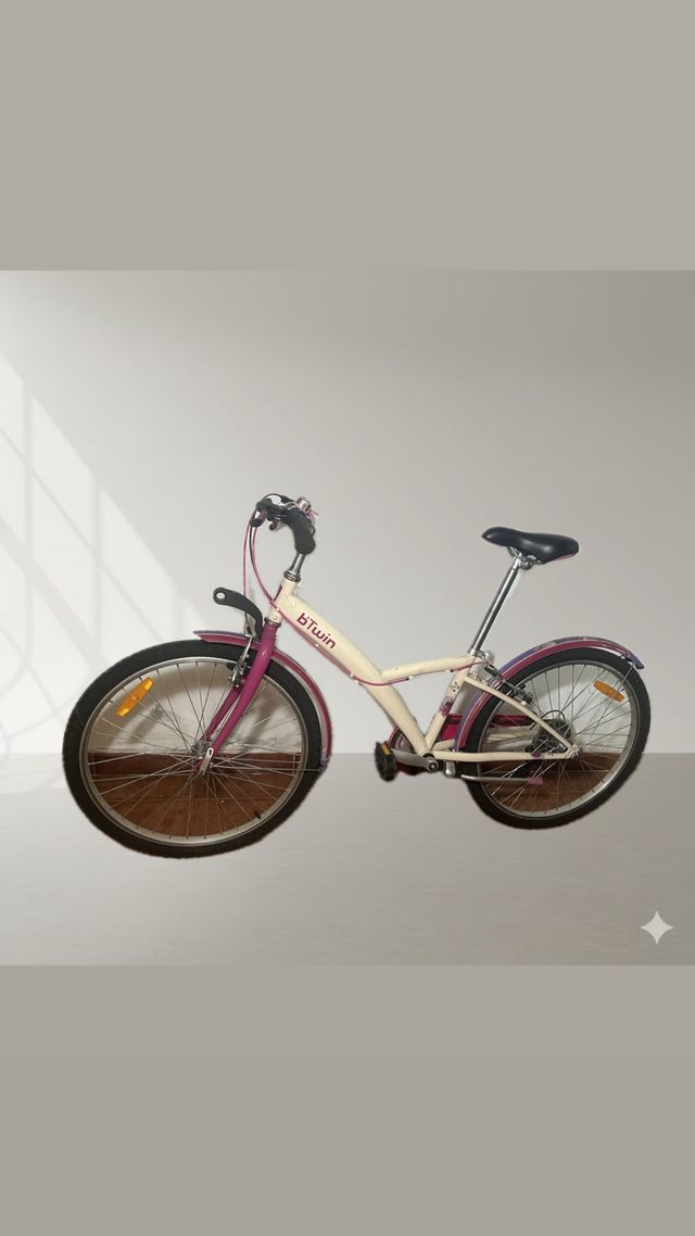 Detalles del productoBicicleta bTwin en color blanco y morado, ideal para niños y niñas de 7 a 14 años.
