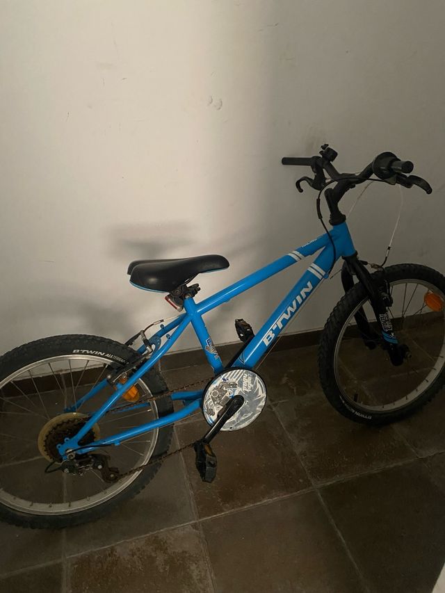 Bicicleta infantil de color azul, ideal para los más pequeños. - Marca Btwin. - Frenos delanteros y traseros.