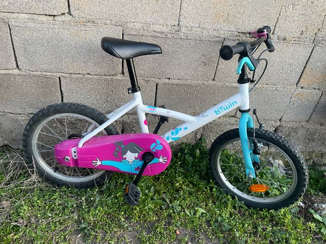 Bicicleta infantil Btwin blanca y rosa 16 pulgadas