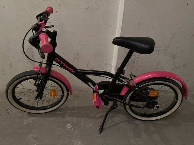 Bicicleta infantil Btwin de 16” en color rosa y negro. Ideal para los más pequeños. Comprada en Enero de 2021