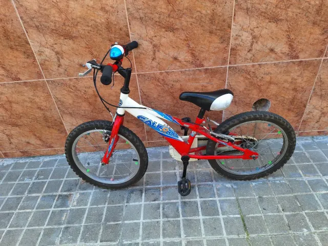 Bicicleta de niño marca California, ideal para los más pequeños. - Cuadro de color blanco y rojo. - Ruedas de 16 pulgadas. - Incluye timbre azul.