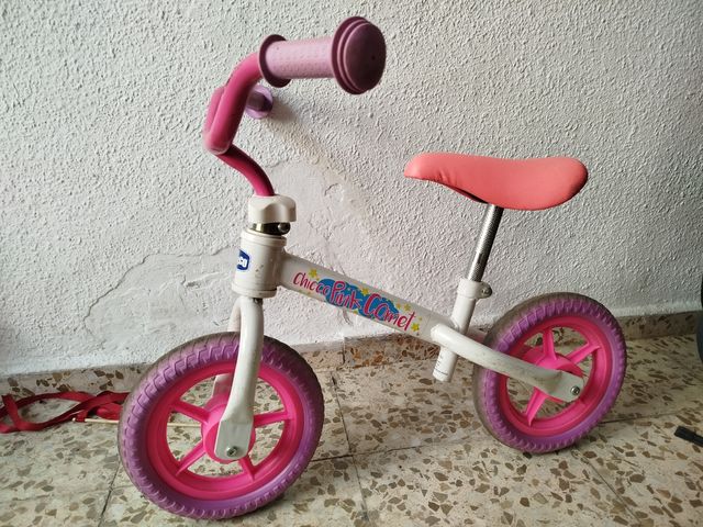 Bicicleta de equilibrio para niñas de la marca Chicco. - Color blanco y rosa. - Diseño divertido con el nombre Pink Comet. - Ruedas de 12 pulgadas.