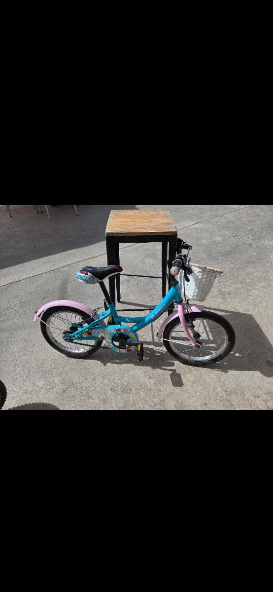 Detalles del productoBicicleta infantil de Decathlon, ideal para los más pequeños. Con un diseño divertido en azul y rosa.