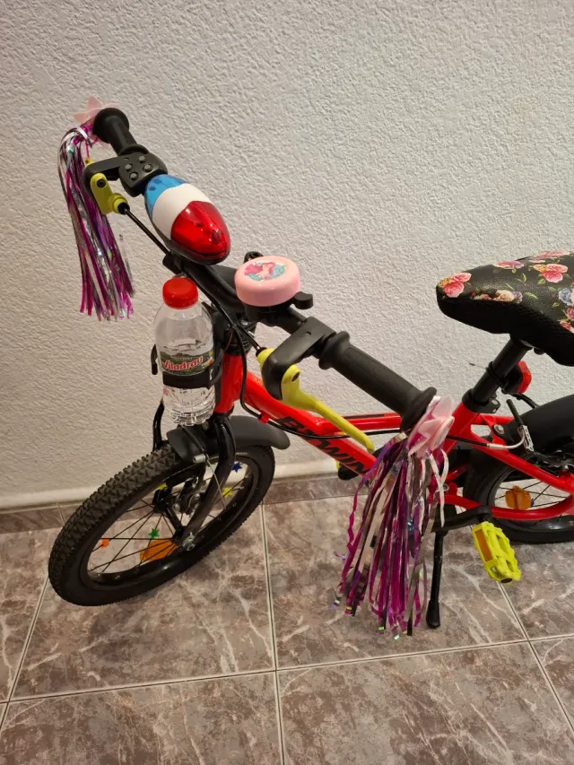 Bicicleta infantil B'TWIN de 16 pulgadas, fabricada en aluminio e incluye extras.