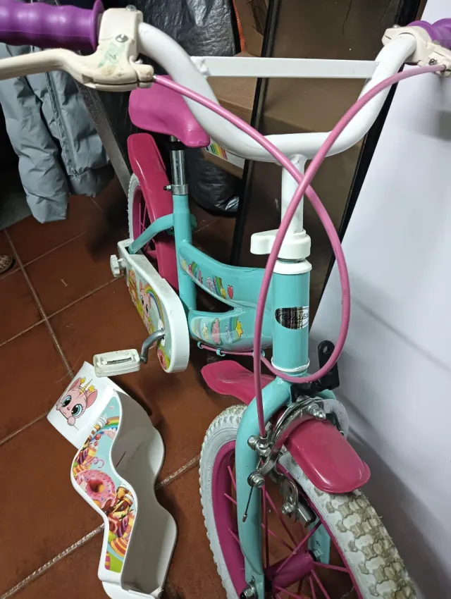 Detalles del productoBicicleta infantil de Decathlon, ideal para niños de 5 a 7 años. Cuenta con un diseño divertido y colorido.