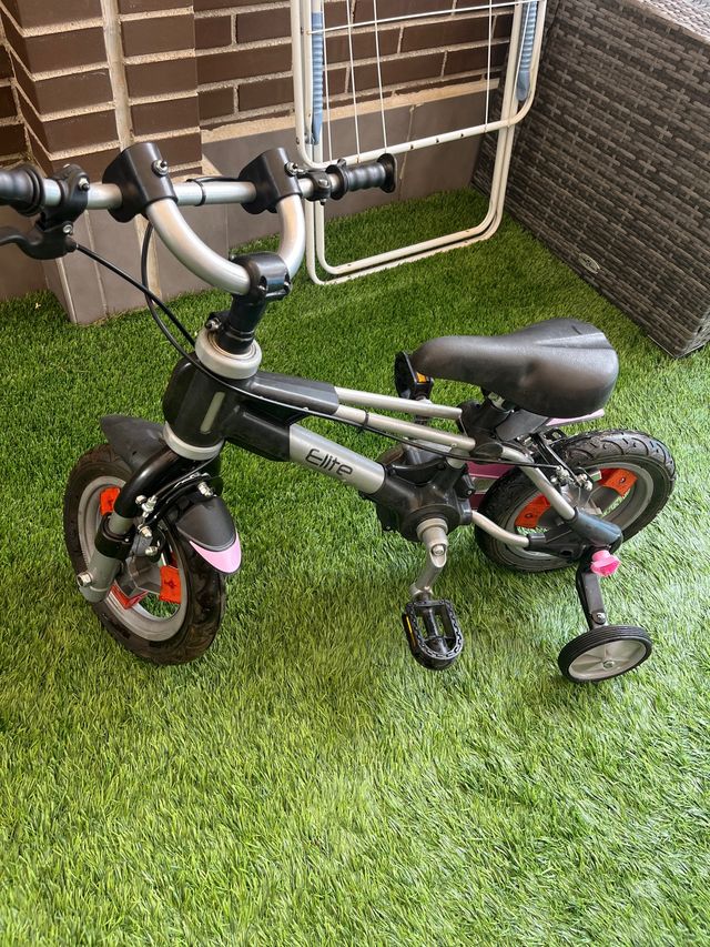 Detalles del productoBicicleta infantil Elite en buen estado, ideal para principiantes. Hay que apretar un freno, pero está en buen estado. El sillin tiene una raja, pero creo que con pegamento fuerte, se arregla sin problemas (prefiero aue sea el comprador quien lo valore)